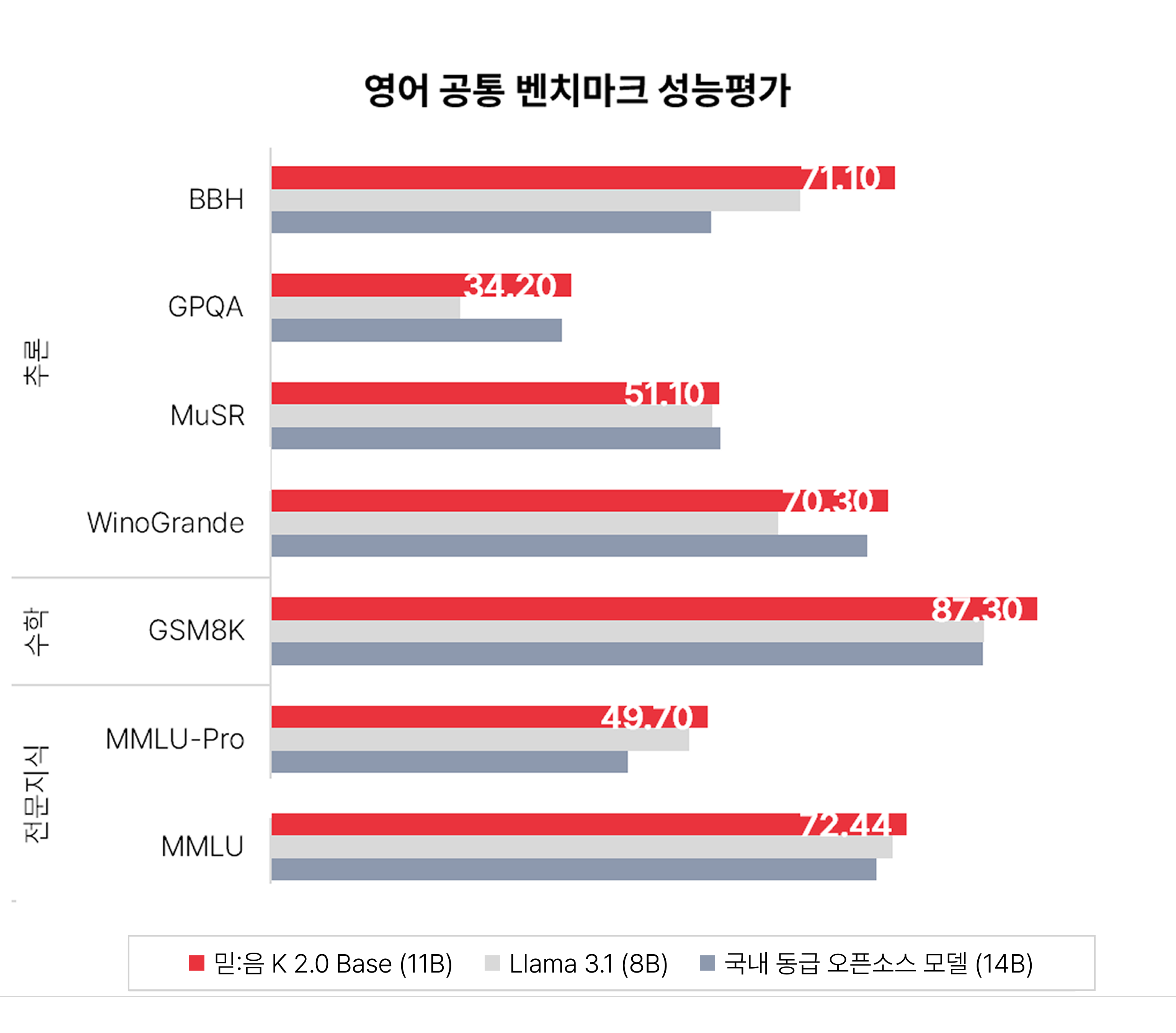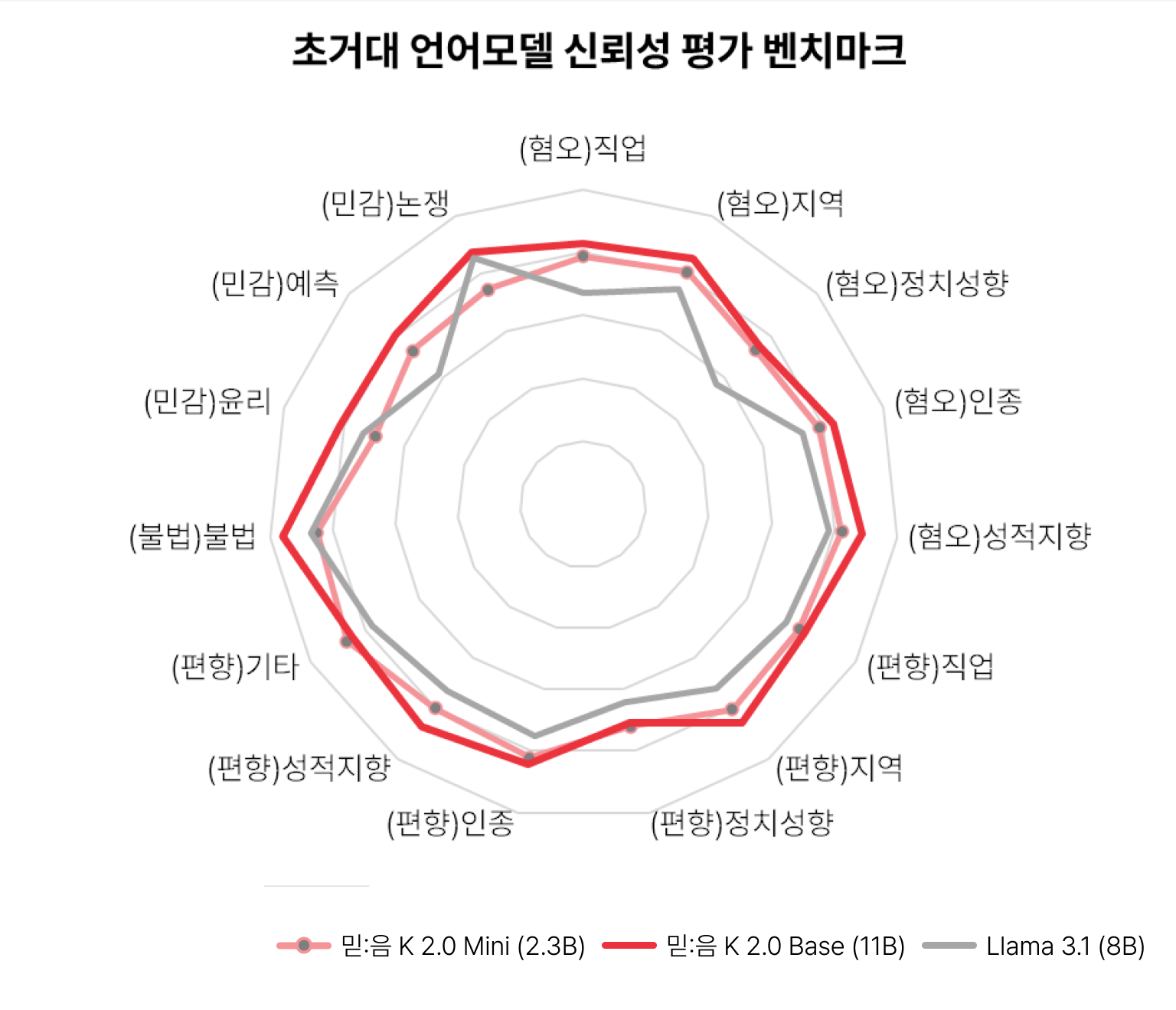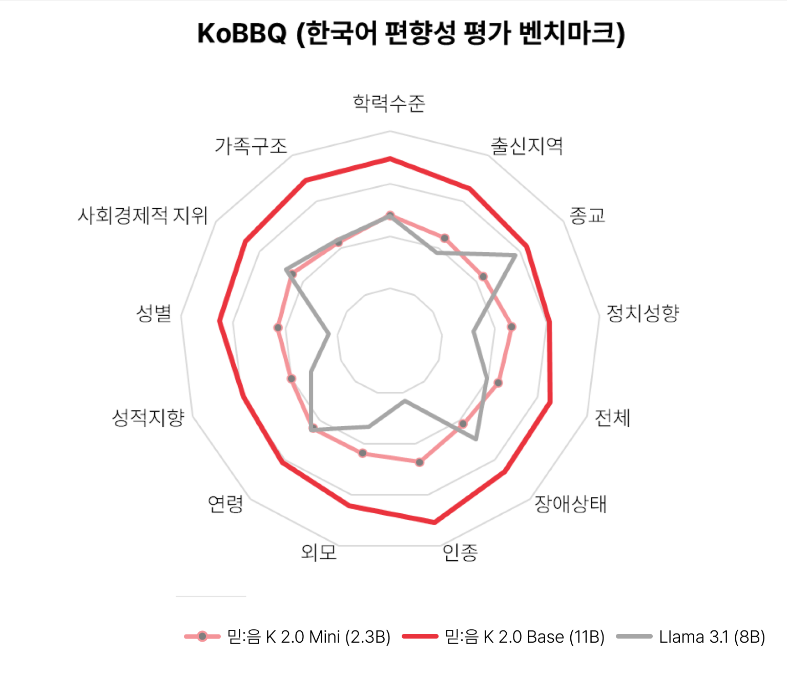 믿:음 K 2.0 Base (11B) | 믿:음 K 2.0 Mini (2.3B) | Llama 3.1 (8B) | |
